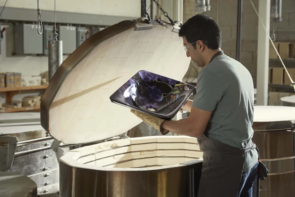 精湛工艺同样是科勒艺术系列的灵魂。科勒借助自然力量和卓越工艺,重新定义自然原质的轻奢主义。艺术系列精选意大利天然大理石、艺术玻璃及铸铁等高端材质,再由技艺超群的工匠制作出花瓣、石头等原生造型,营造充满自然气息的浴室空间。例如,在制作典藏级图案陶瓷水槽时,匠人们严格遵循比肩顶级骨瓷的百年传承制作工艺,将设计师创作的图案由全球顶尖的转印技术解构,再置于定制的窑炉中烧制。而玻璃作品的创作则如同精密的制表艺术,由熟练的匠人倾注数日的心血,通过精确掌控加热、浇注、铸造、旋转或压制玻璃,方能成就正确的形态和质地。